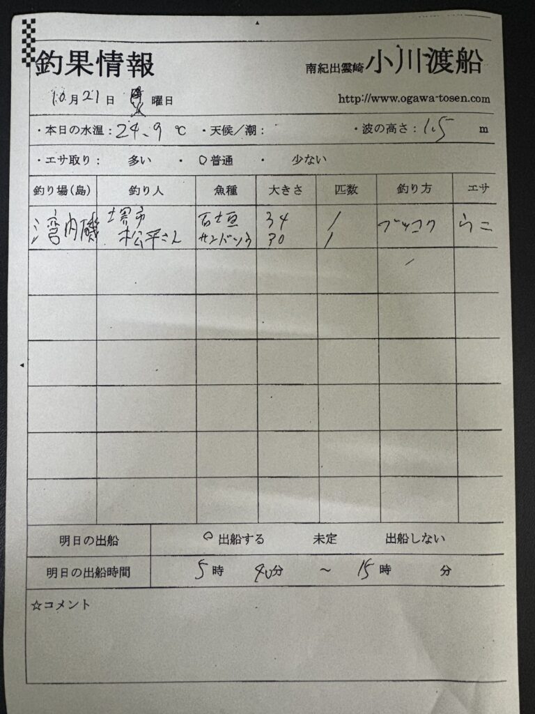 10/20 すさみ町見老津・浜丸渡船さん釣果