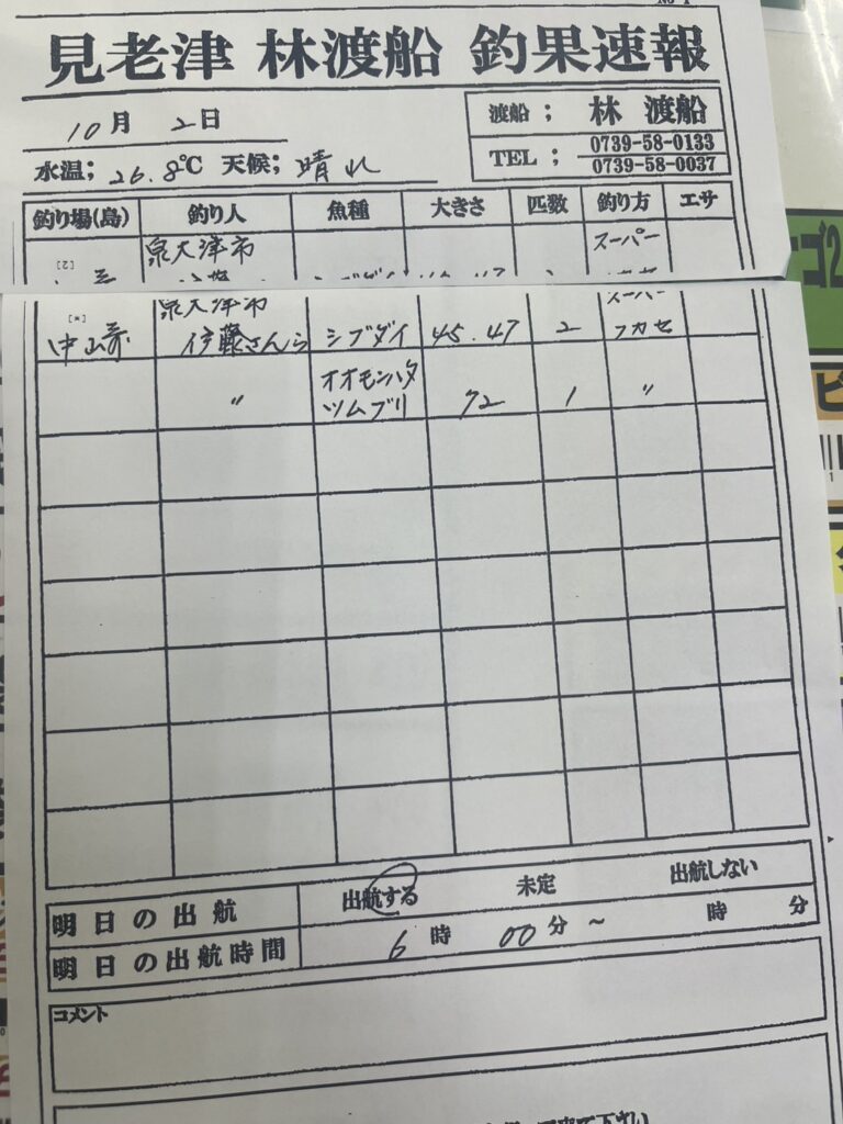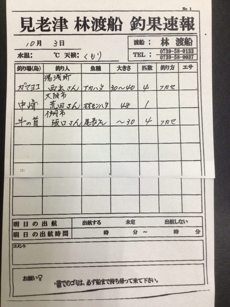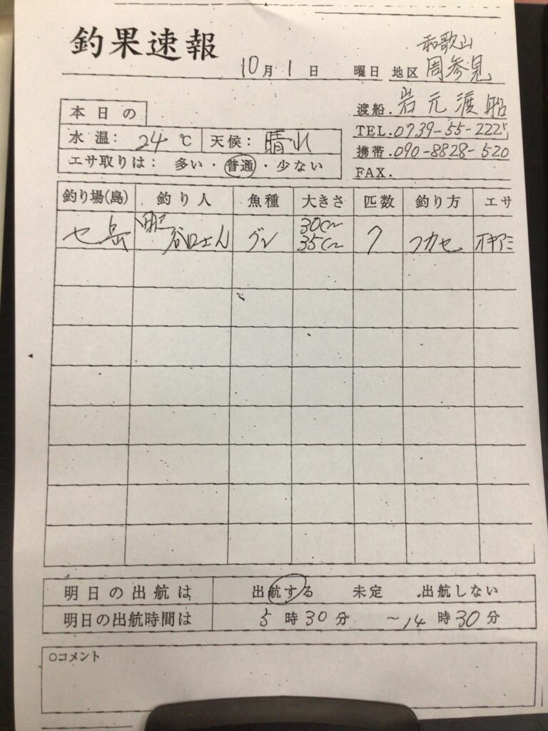 10月1日(水)すさみ町 岩元渡船さん釣果