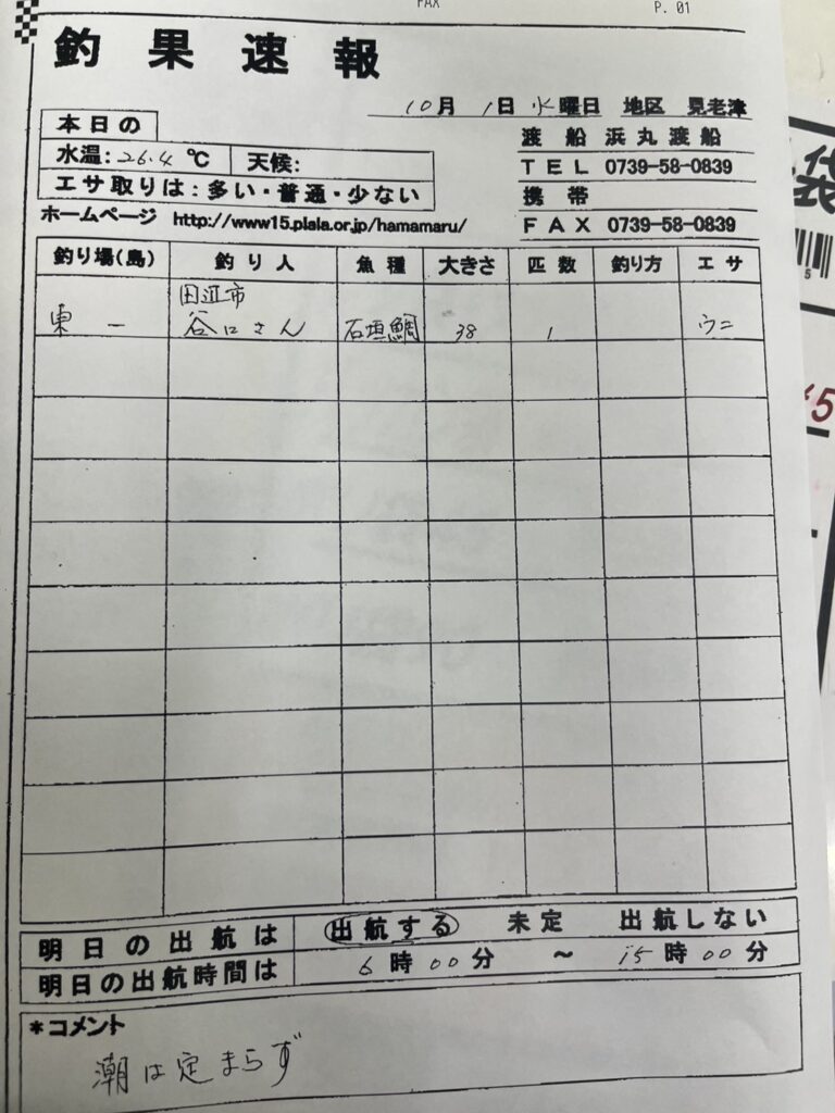 10/1すさみ町見老津・浜丸渡船さん釣果