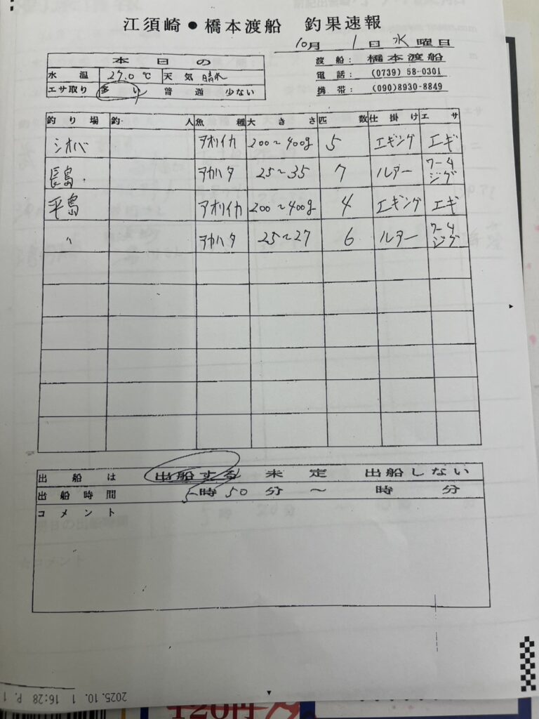 10/1すさみ町江須崎・橋本渡船さん釣果