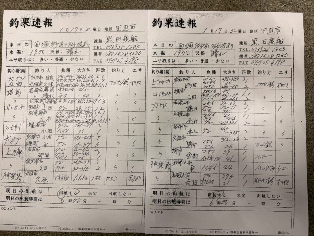 1/18(日)みなべ町 うえひら渡船さん釣果