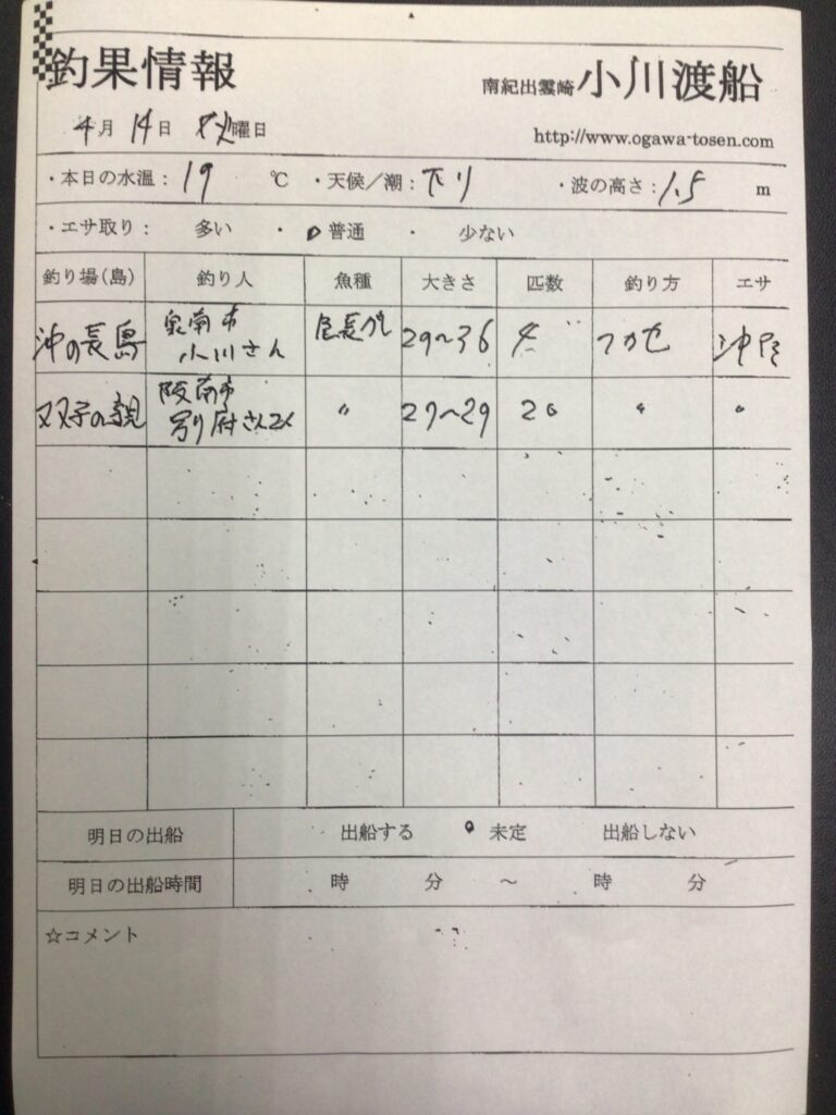 4/12串本町田子・双島マリンクラブ渡船さん釣果