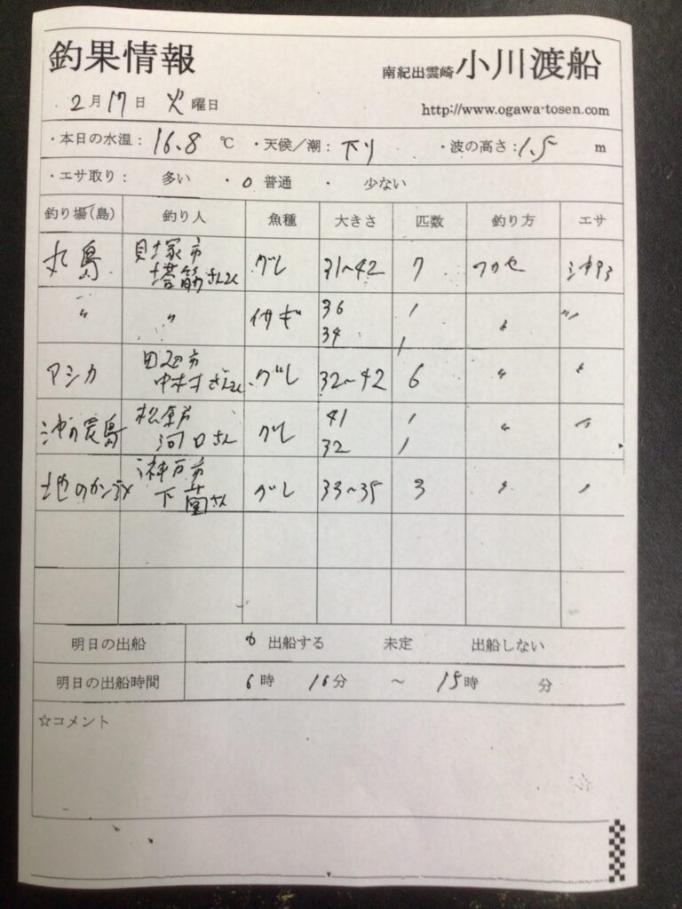 2/17串本町出雲・小川渡船さん釣果
