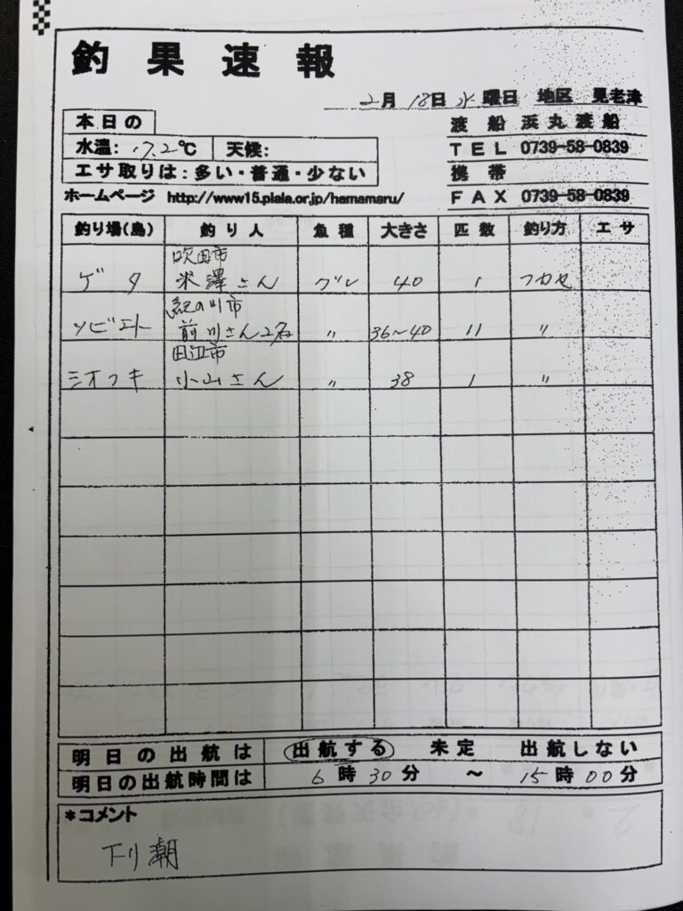 2/18 串本町出雲・小川渡船さん釣果