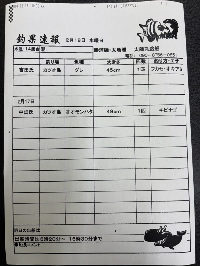2/18 太地町・太師丸渡船さん釣果