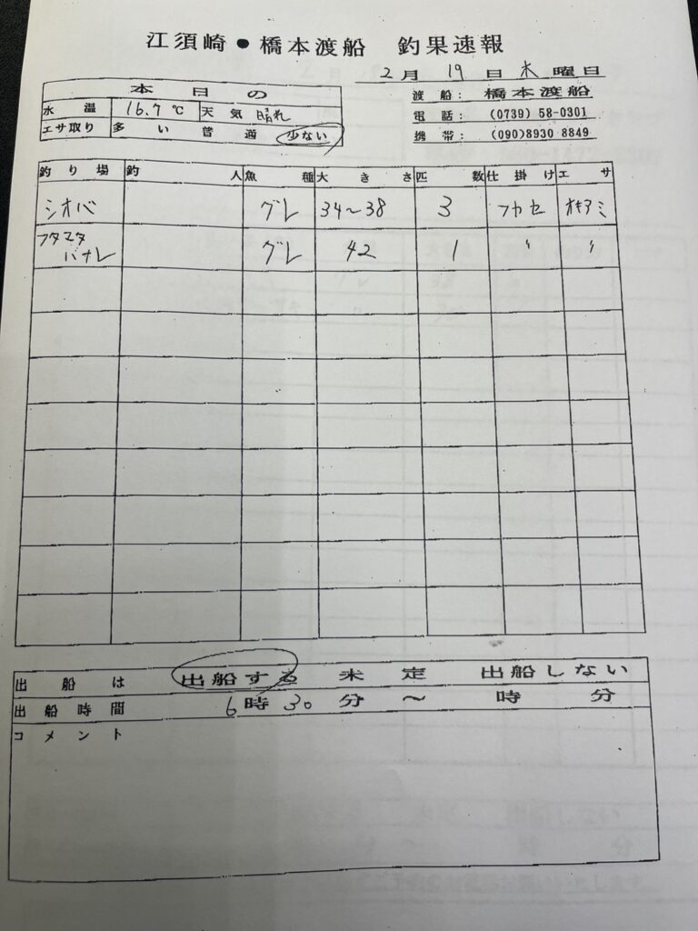 2/19串本町田子・双島マリンクラブ渡船さん釣果