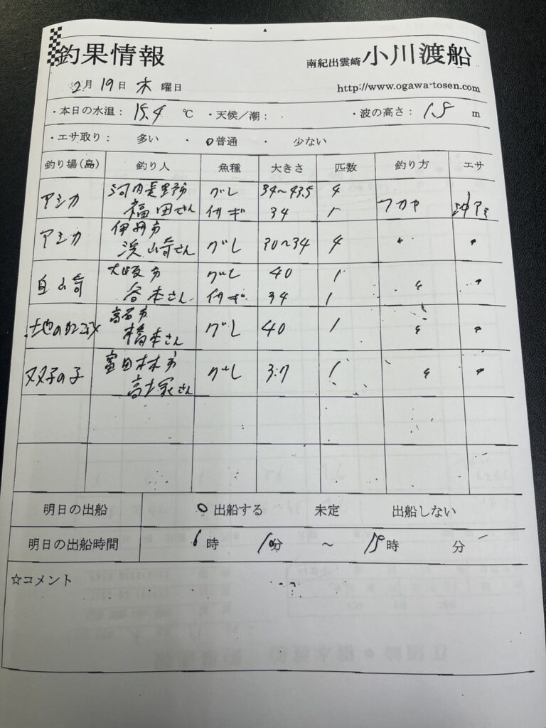 2/19串本町出雲・小川渡船さん釣果