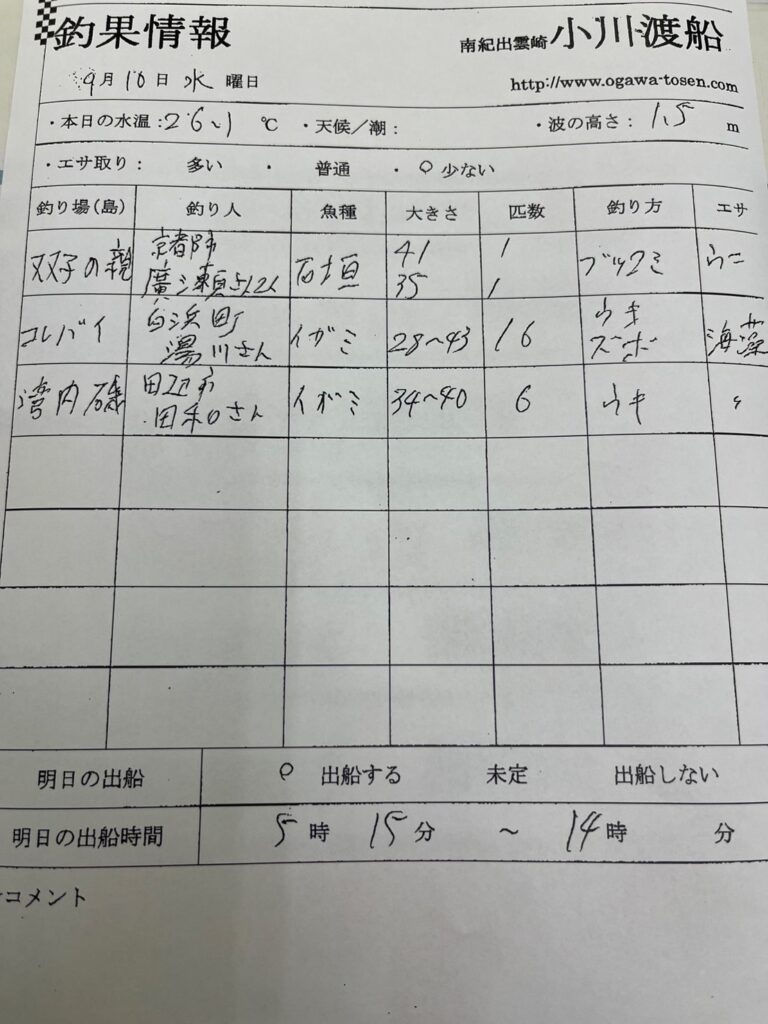 9/15すさみ町江須崎・橋本渡船さん釣果