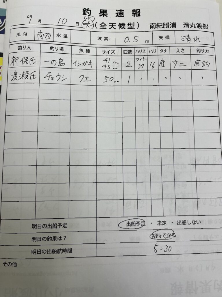 9/8すさみ町見老津・浜丸渡船さん釣果