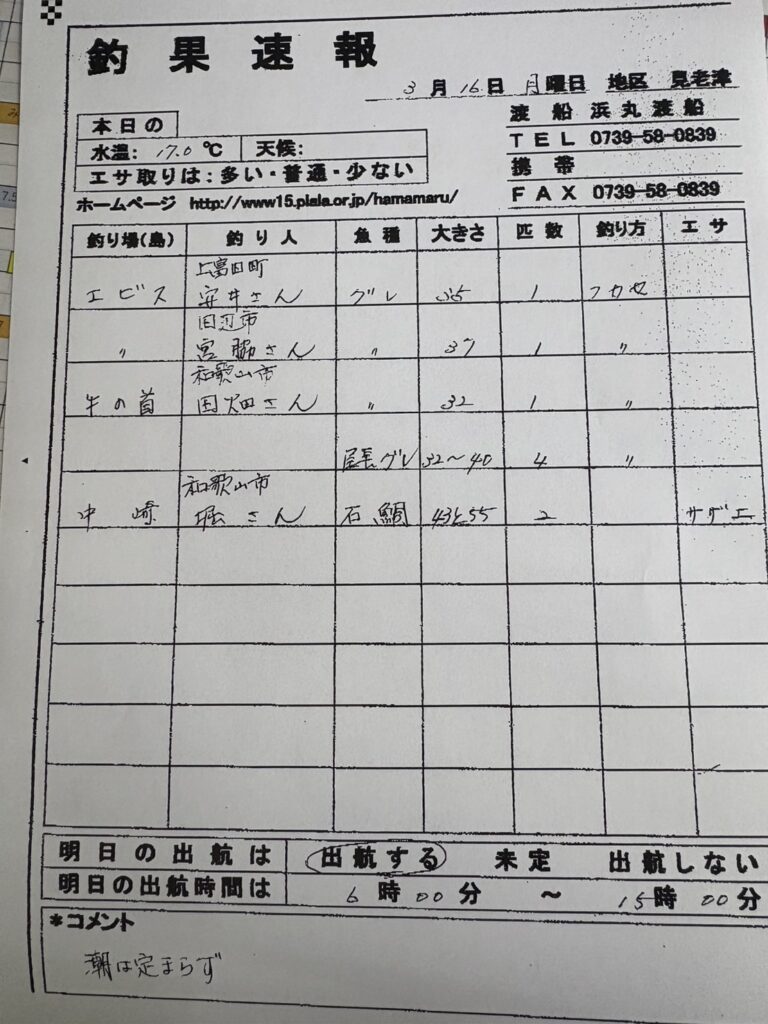 3/16すさみ町見老津・浜丸渡船さん釣果