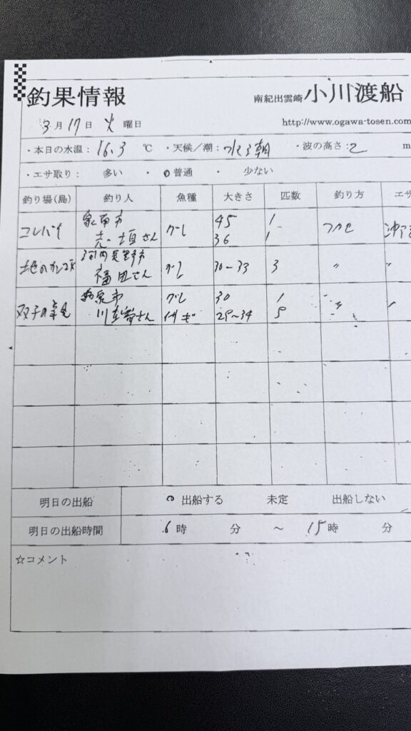 3/17串本町出雲・小川渡船さん釣果