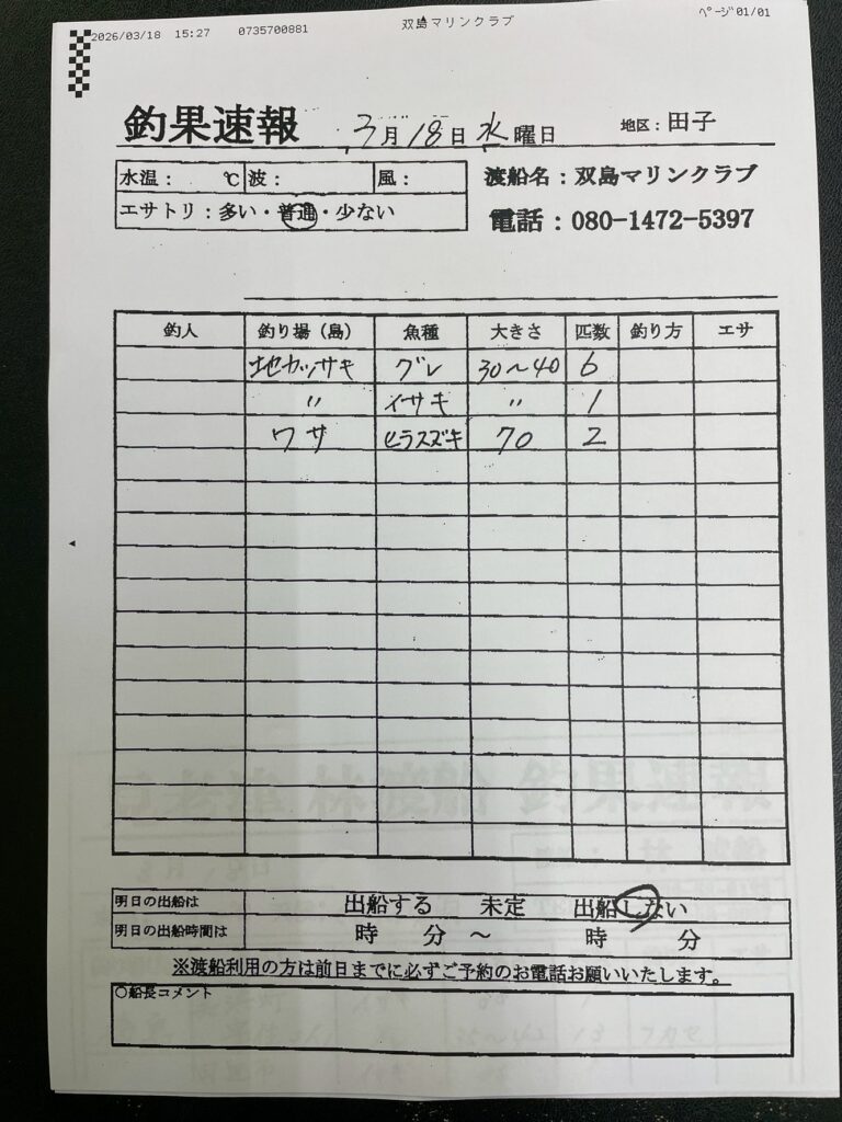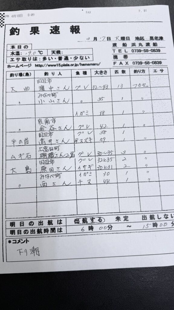 3/18 串本町田子・双島マリンクラブ渡船さん釣果